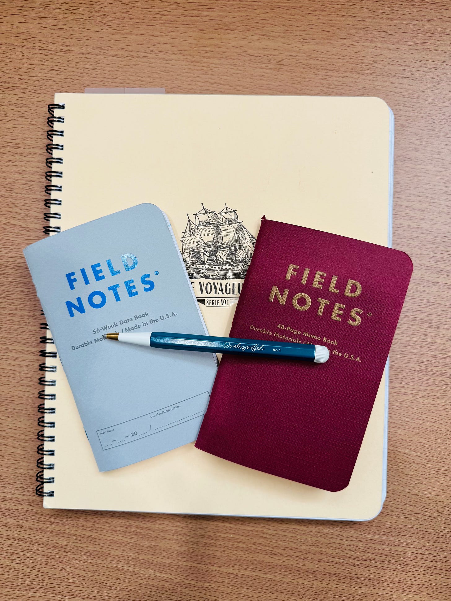 Go Everywhere Capture: Like all of us. my life is full. I am a husband, father, businessperson, a member of my community, parish, and a Netflix subscriber. Sometimes it’s a lot to keep up with. I need something with me all the time, to capture my world. I’ve chosen Field Notes as my daily note taking companion. I’ve been buying (hoarding) Field Notes brand notebooks since about 2018. If you aren’t aware, Field Notes is a Chicago-based company designing and building fully made in the USA pocket notebooks and other stationary goods. The standard Field Notes offering is a 3.5” x 5.5” pocket notebook which is bound together with simple staples. They fit well in blazer pockets, jeans and almost any bag and are thus super portable. At 48 pages, there is just enough space for me to fill approximately one notebook per month.